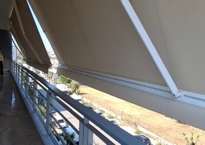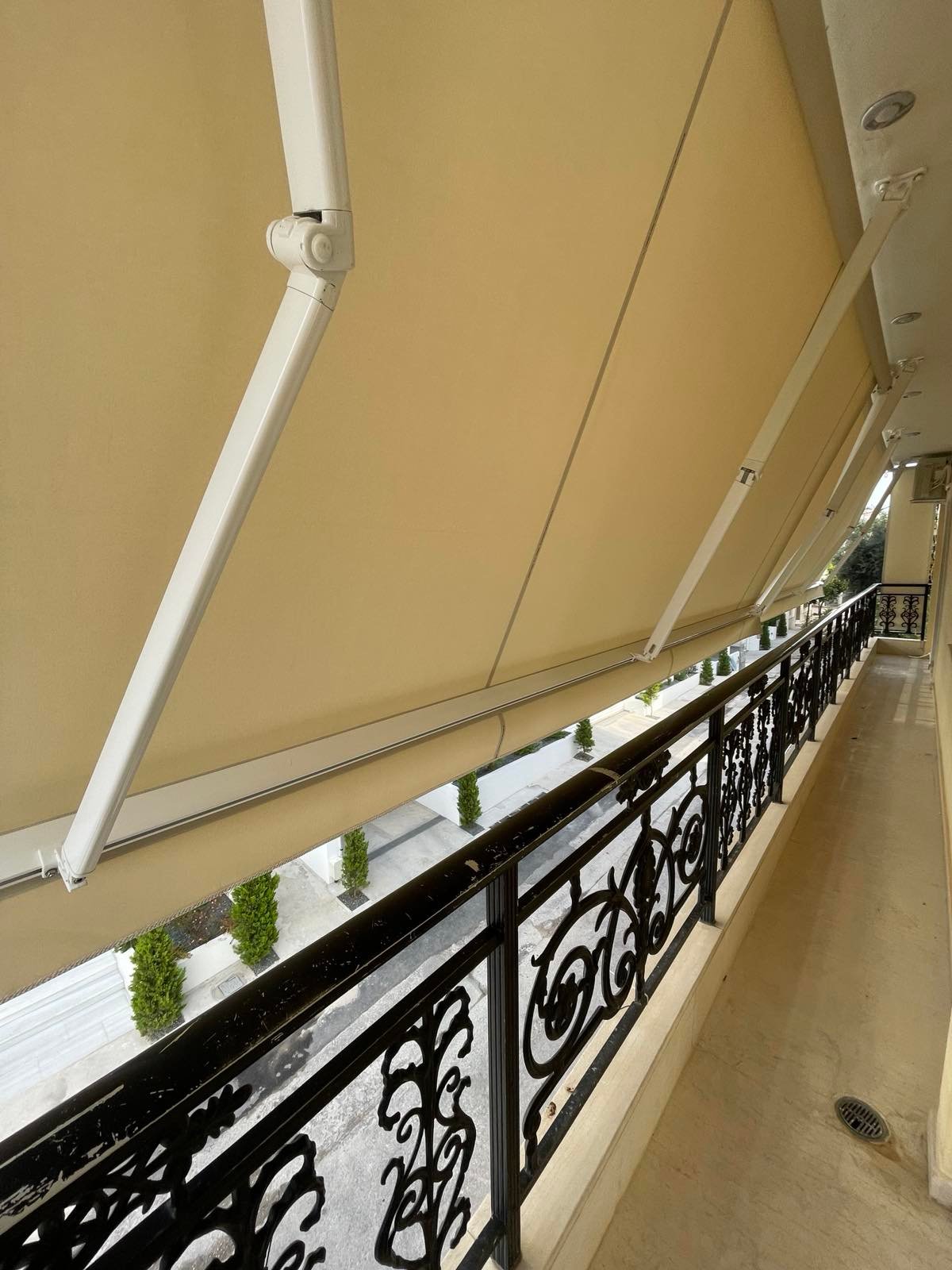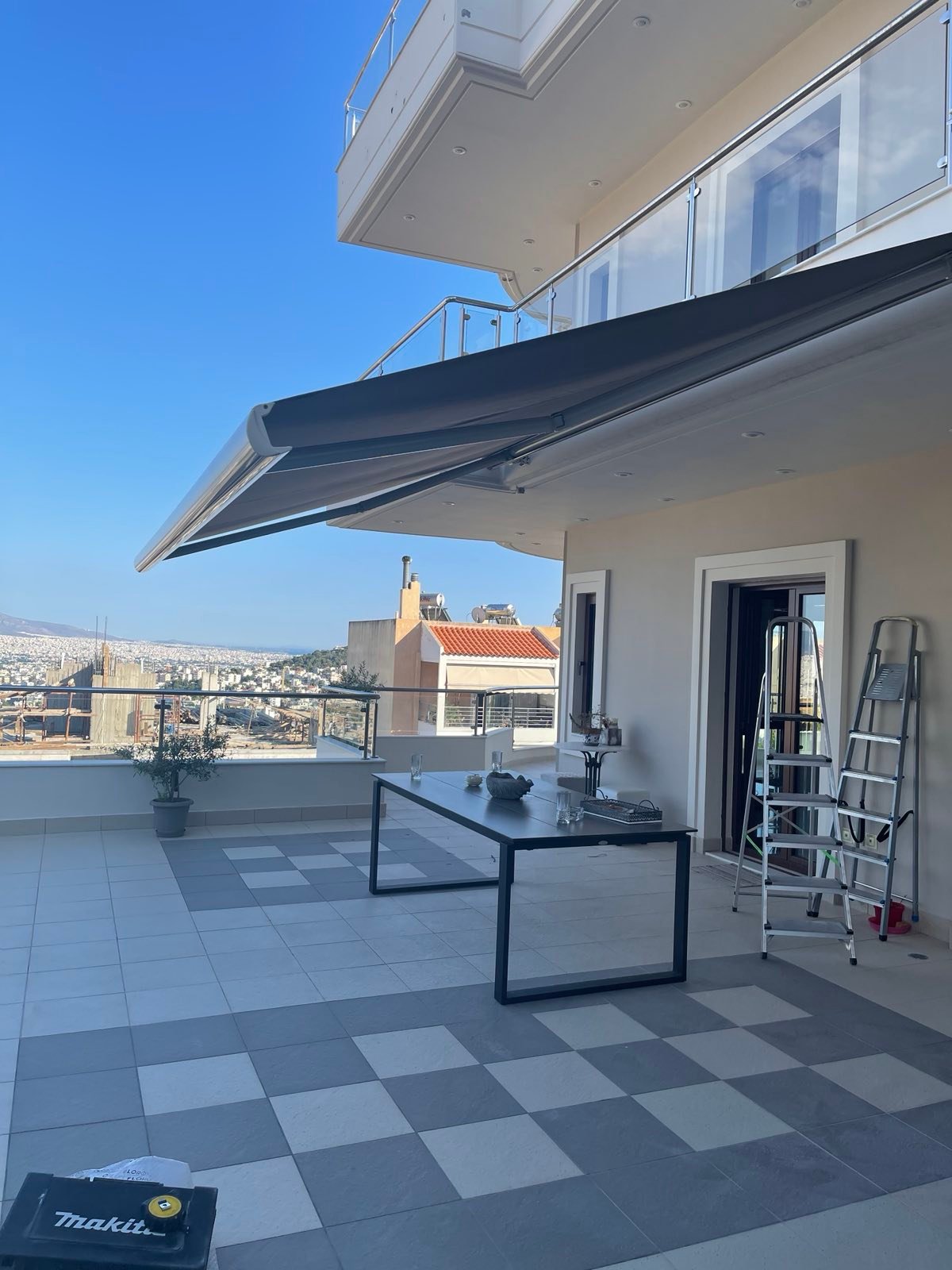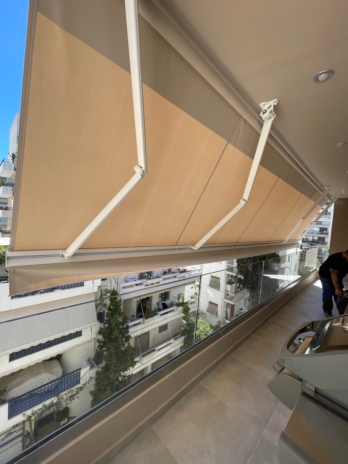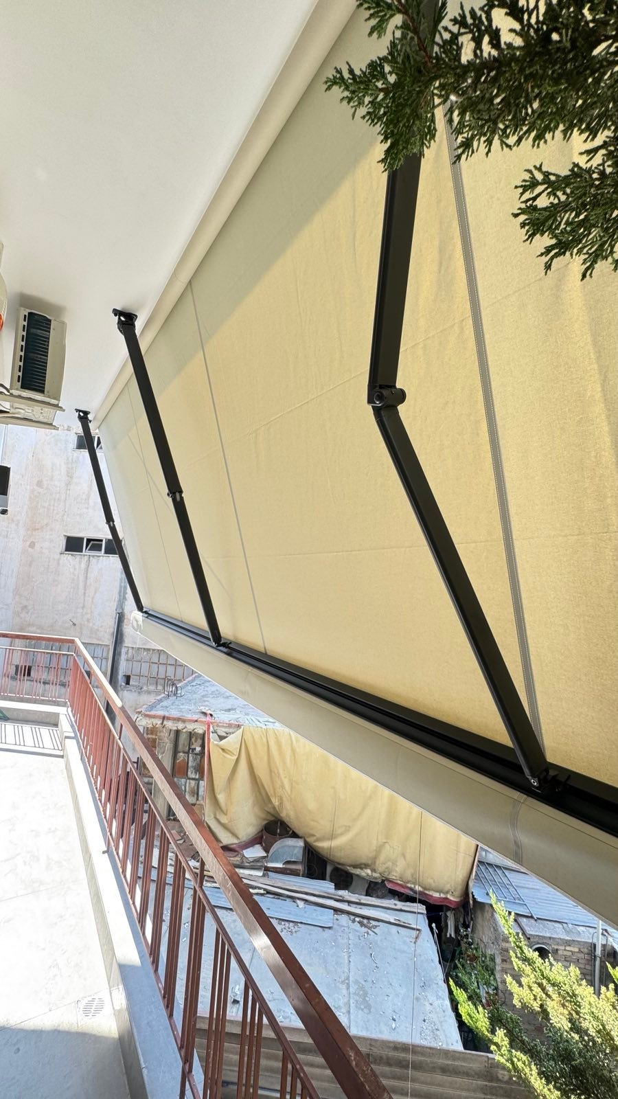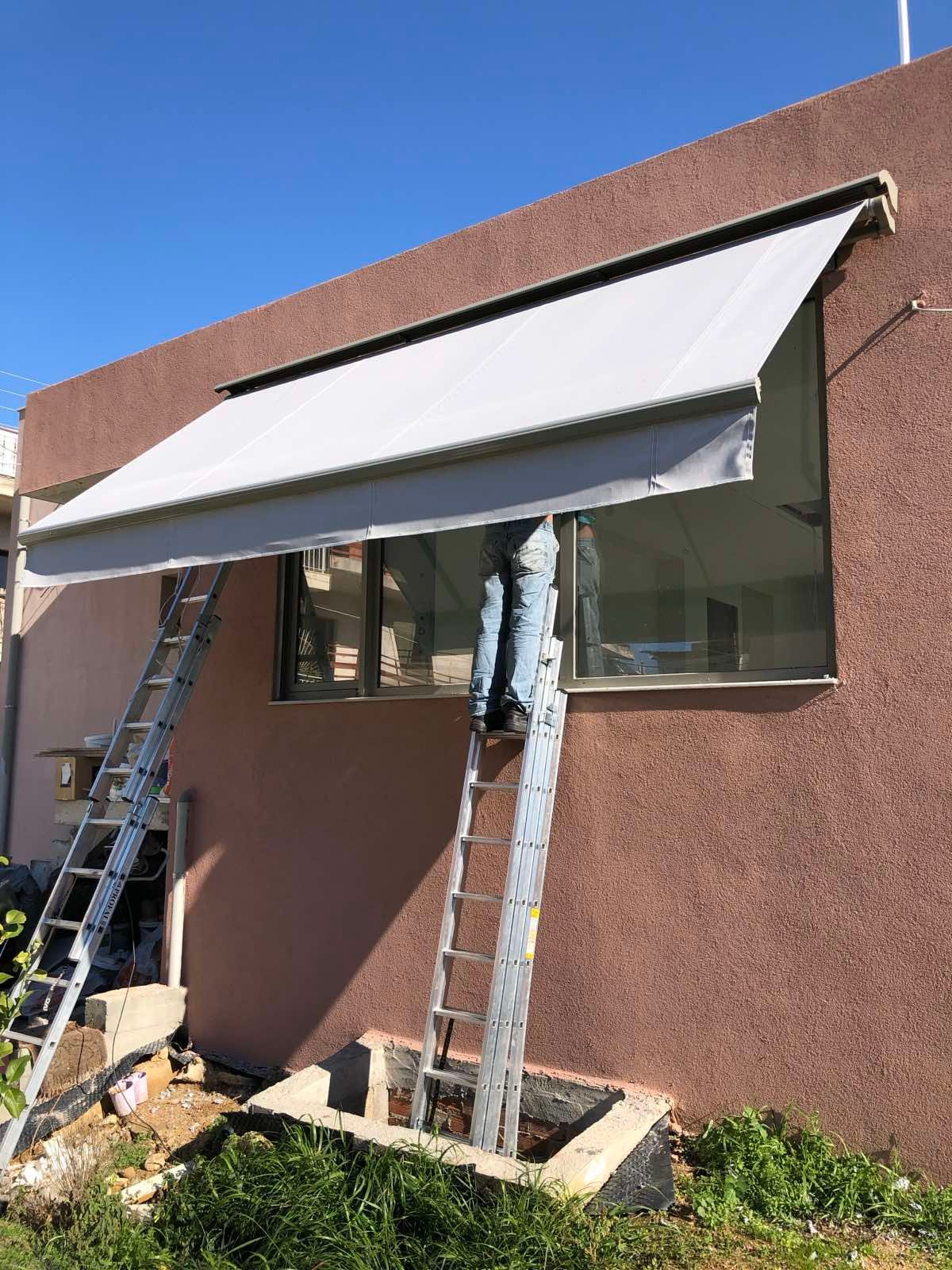Η διαδικασία ξεκινά με μελέτη του χώρου και των απαιτήσεων του πελάτη. Στη συνέχεια, επιλέγονται τα κατάλληλα υλικά – ύφασμα, μεταλλικός σκελετός, μηχανισμός κίνησης (χειροκίνητος ή ηλεκτρικός) – που εξασφαλίζουν μέγιστη αντοχή, μακροχρόνια χρήση και άψογο αισθητικό αποτέλεσμα.
